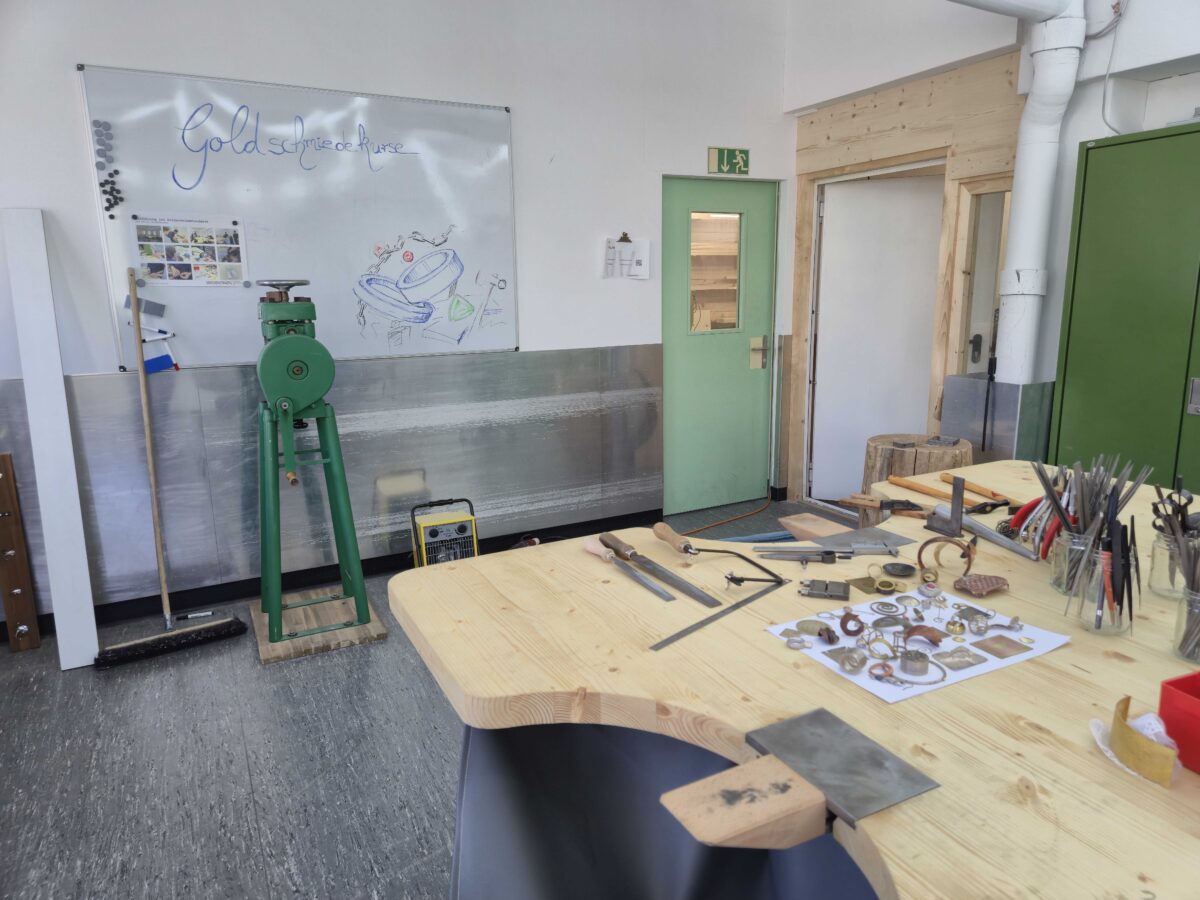 Im 1000m² grossen Werkpark wird in der Holzwerkstatt gesägt, geschliffen und gehobelt, in der Metallwerkstatt geschweisst, gebohrt und geschnitten. In der Goldschmiede werden Edelsteine, Glas und Kunststoff bearbeitet, und in der Textilwerkstatt wird designt und genäht – der Kreativität sind keine Grenzen gesetzt. Diese Atmosphäre inspiriert dazu, sich an die nächste freie Maschine zu setzen und ein eigenes Projekt zu starten.